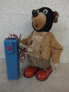 マルサンのブリキ人形スモーキングベアです。1950年代のおもちゃで汚れや動作不良はございますが、ブリキのおもちゃはコレクター間でジャンク品でも高値で取引される商品が多くございます!動作品・箱付なら高価買取の期待大です。