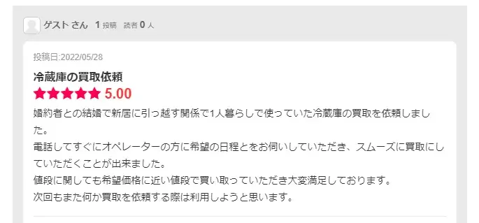 しかし、預けておいた家電が転居先の間取りと合わず、結局あとから売却することに……というのはよくある話です(実際、そうしたご依頼も多くいただいています)。